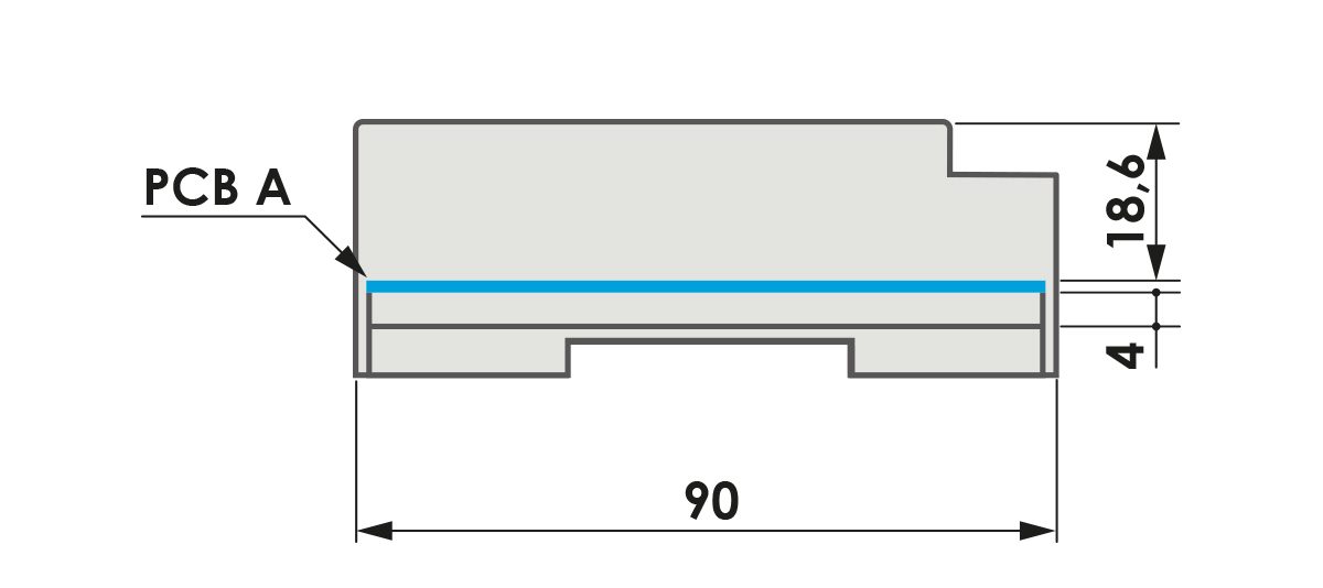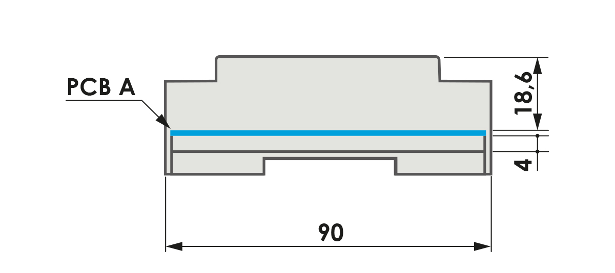 This modular enclosure can be fastened to DIN (EN 60715) rail and can be provided with several terminal covers. There are several versions of this modular enclosure: Type A (similar to the previous Modulbox product and bearing the same compatibility with the pcbs), type B ( with one side higher to leave more space for larger electronic components) and type C (with both sides higher to have more space for the electronic components).